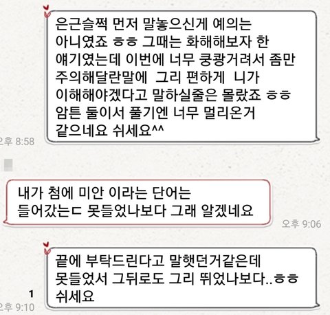 그 와중에 또 반말 존댓말 섞길래 똑같이 해주고 차단했음