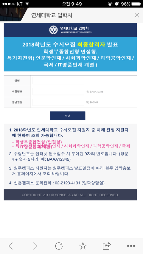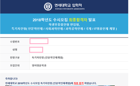 말 그대로 연세대 최종 합격했어!!!