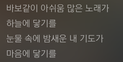'눈물속에 밤새운 내기도가 마음에 닿기를 '의 눈물속에는 미래의 해체된 멤버들의 힘든 나날인거같고 팬들의 사랑이 더 필요해서 한때 워너블이였던분들 마음에 기도가 닿는거....이건 뒷부분 해석이랑 연계됨 ㅠㅠ