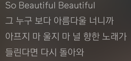 뷰티풀 뷰티풀 이건 미래의 워너원에게 여전히 아름답다는 메세지같음 그리고 현재의 워너원이 미래의 와나원이 울고있진않을까 걱정한거= 현재워너원도 미래에 그럴거라고 예상한거