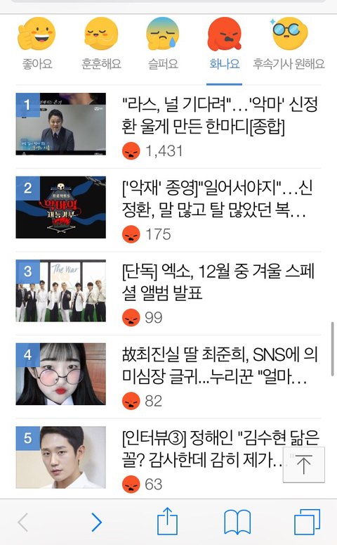 의식은 지들이 다하면서ㅋㅋ 우리기사보면 팬들보다 특정팬덤이 더많음ㅋㅋ 지들기사마냥 상주해.. 우리팬들 너무 별거 아니게 생각하는듯.. 고작 결앨범 기산데 저렇게 될일이냐? 진짜 별미친년들ㅋㅋ 아 똑같이 쟤들기사마다 화나요테러 해주고싶네ㅅㅂ