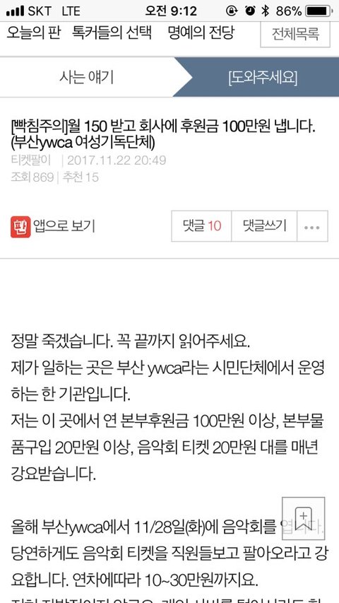 YWCA에서 직원에게 월 150만원의 급여를 주면서 연간 100만원 정도의 후원을 강요한 것, 재단에서 진행하는 행사 티켓을 팔아오라는, 못 팔았을 경우 개인의 돈으로 티켓을 사서 그 돈을 채워야 한다는 글에 대한 진실을 알고 싶습니다.