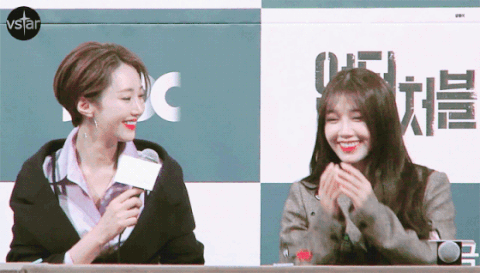 부끄러워하는 정은지 귀엽다는듯히 쳐다보는 고준희