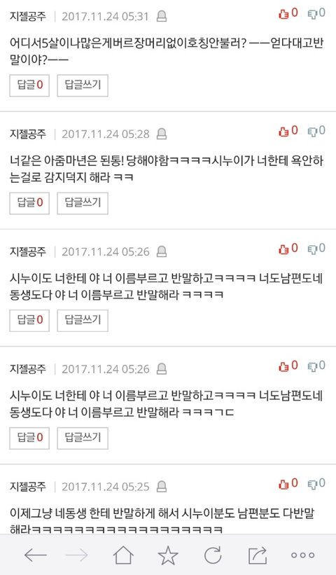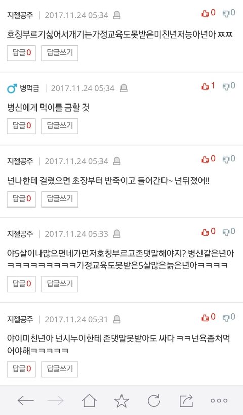 이게 새벽에 받은 욕테러입니다 ㄷㄷ
