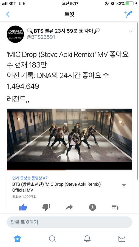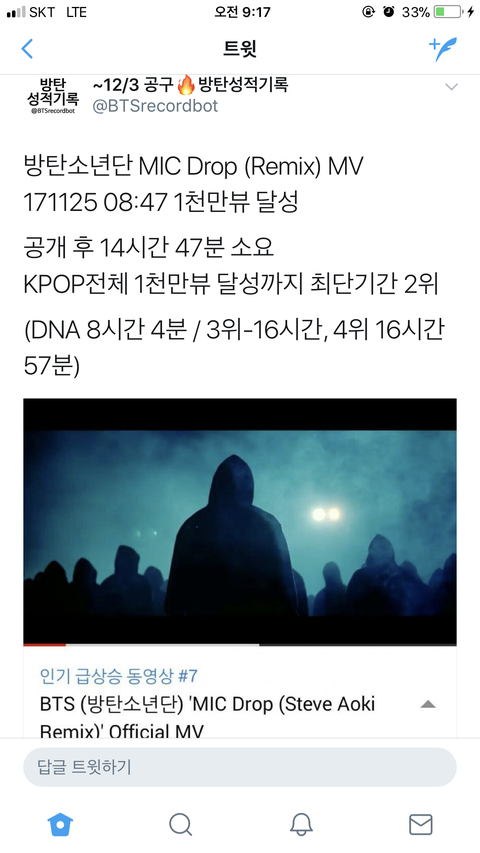 뮤비 기록 세움 또 ㅋㅋㅋㅋㅋ