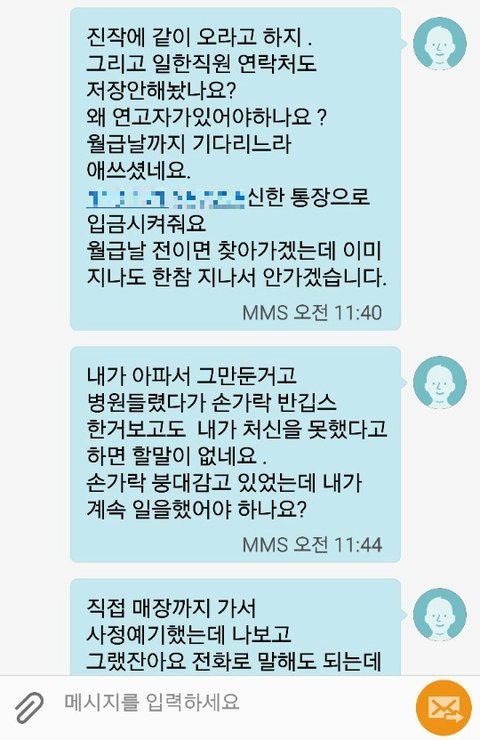 사람안구해놓고 그만둬서 자기한테 피해를 주셨다고 하셨다네요