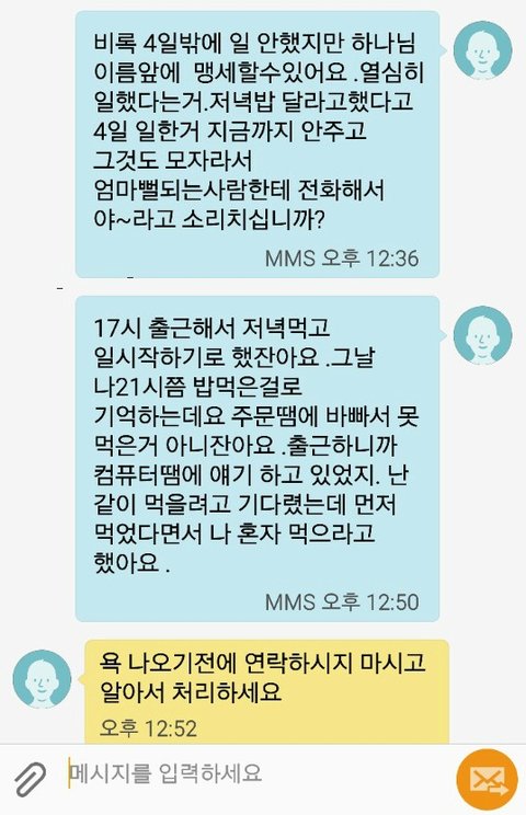 그러더니 전표10개가 밀려있는데 밥을 달라고 한게 잘못이라고 하셨데요