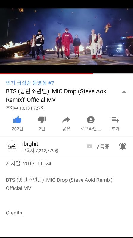 뮤비좋아요수 하루도안됐는데 200만넘겼네