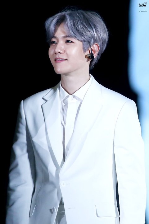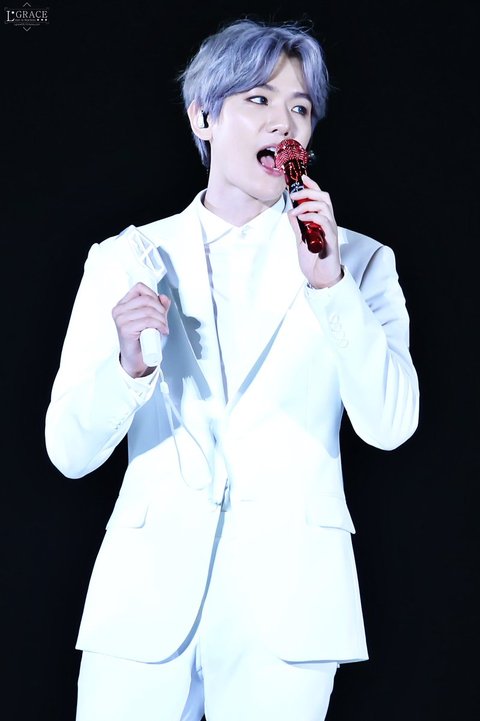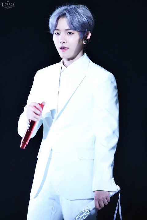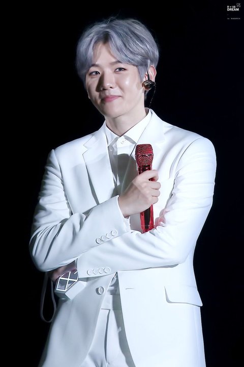 화이트수트에 빨간색 마이크 백현