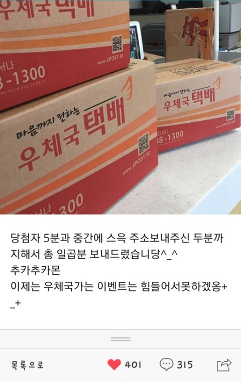 원래 당첨자 5명인데 중간에 2명이 슬쩍 주소 남겨놔서 총 7명한테 선물보냄 (존부.. 덕계못)
