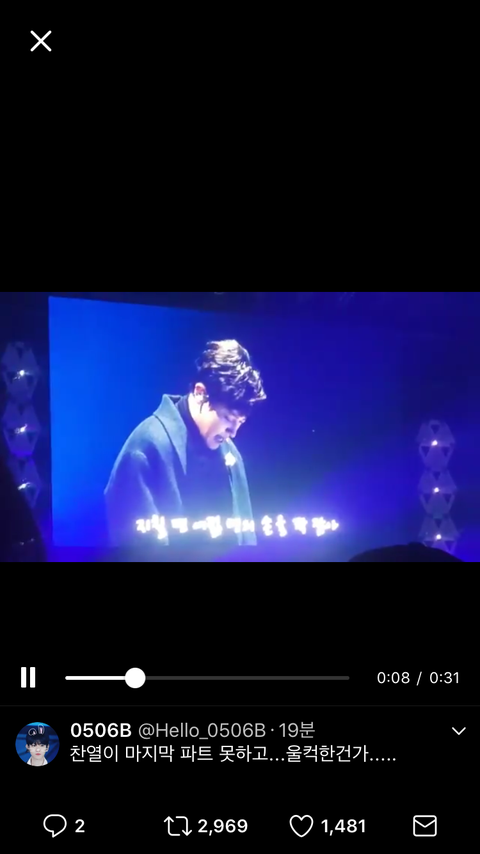 박찬열8명의손을꽉잡아 한담에 울컥해서 파트못했어