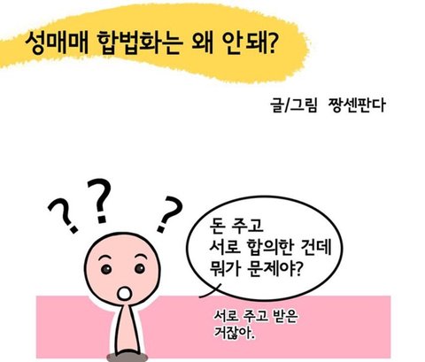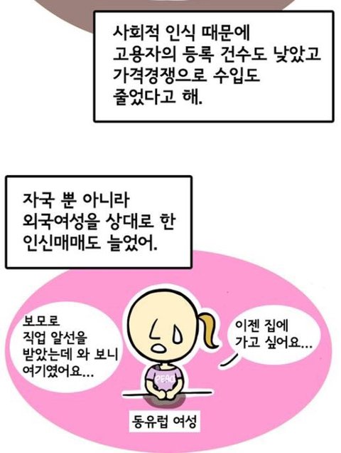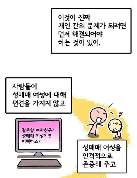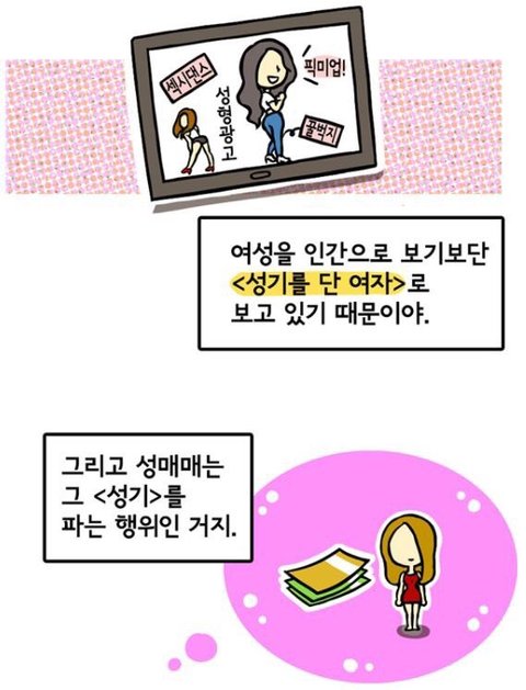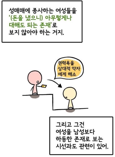 성매수하는 남자를 족쳐 ^^ 그러면 끝이야.욕하려면 성매수하는 남자를 욕하면 되.수요가 없으면 공급도 없어.