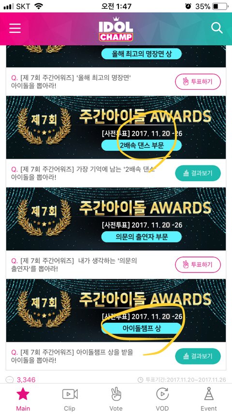 거기서 먹금 당한 투표 녤부리들은 봐주겠지?(사실 이게 목적) ⭐️아챔 주간아 어워즈⭐️ 투표 좀 하자 오늘이 마지막이야 음방도 안 나오는데 이런 거 상 탈 때 자료 화면이라도 보고싶다...