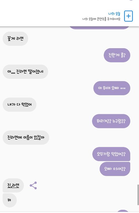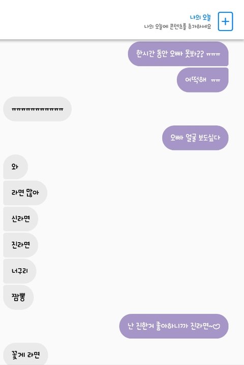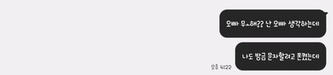 서로 사귀는척 난 여자, 친구는 내 남친인척 해서 서로 막 "오빠 뭐해??" 막 그러면서 놀거든? 우리 톡 이름도 우리가 좋아하는 연예인 이름+오빠 로 바꿔놓고 그러는데,