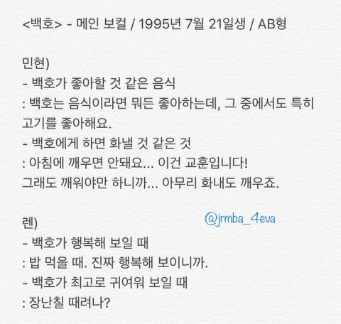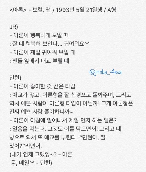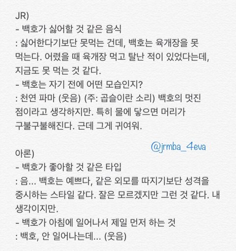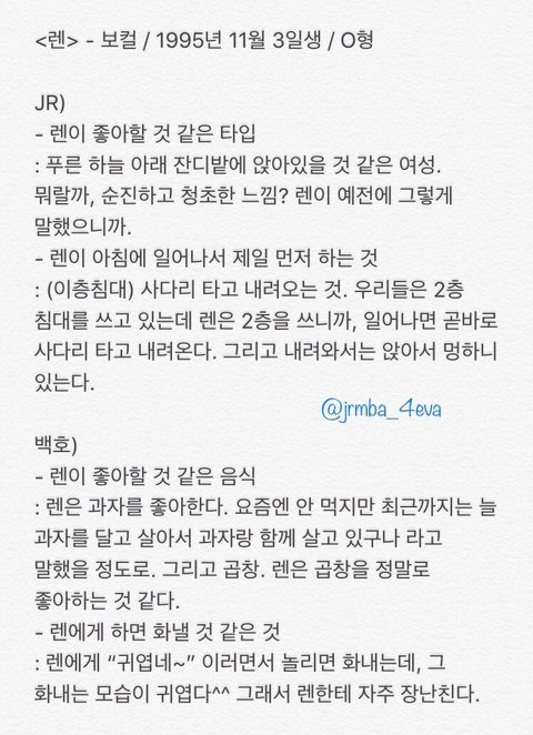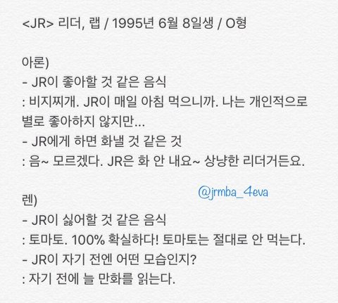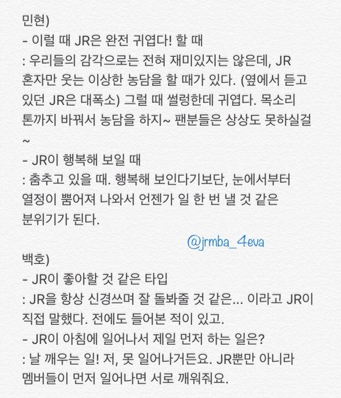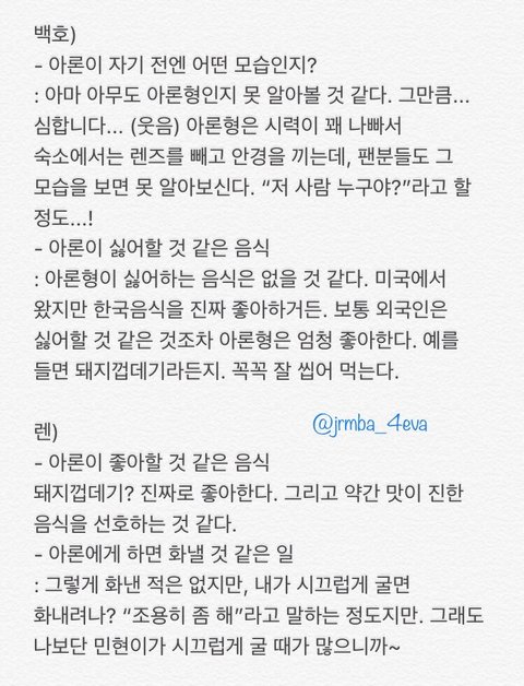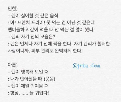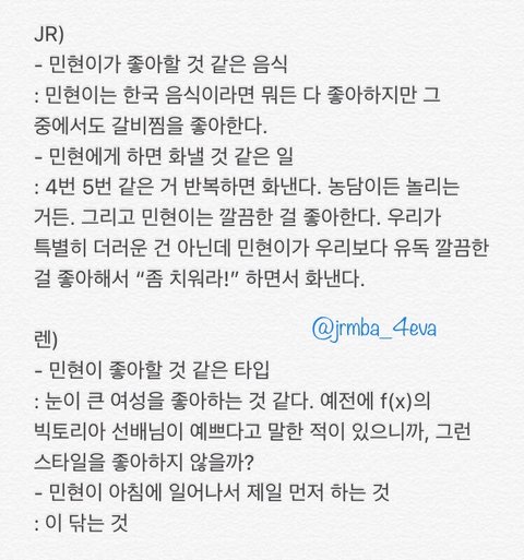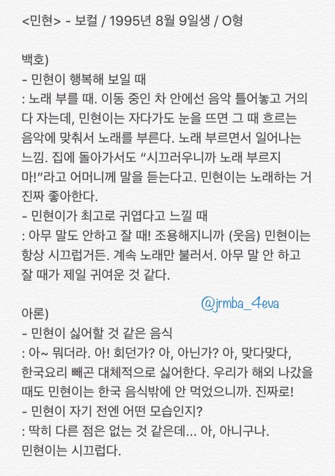 다른 멤버에 대한 질문을 답변하는 형식이야