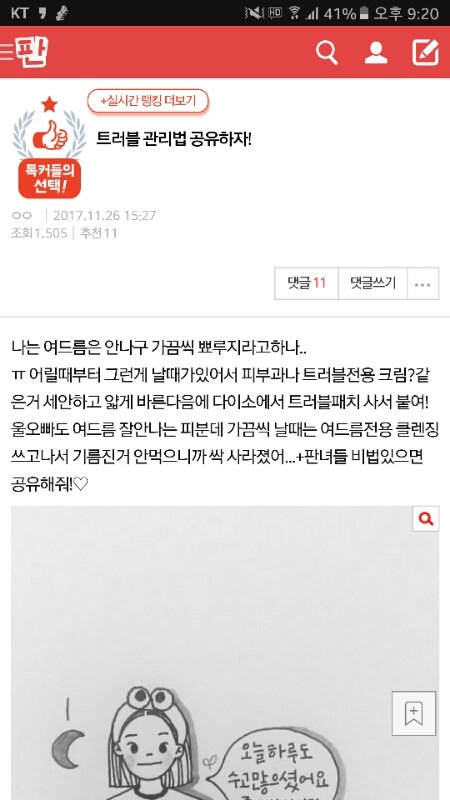 나는 여드름은 안나구 가끔씩 뾰루지라고하나..