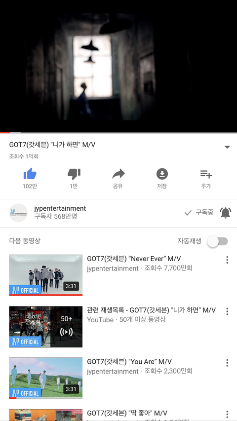니가하면 뮤비 1억뷰라니!!!!ㅠ