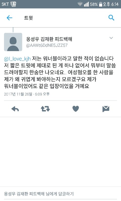 그리고 더 어이없는건 여성을 보고 좋아했는데 왜 여성 혐오가 됨? 좋아한다랑 혐오한다가 언제 같은 맥락이였지? 저거에 대해서 완벽하게 반박하는 사람 있으면 깔끔하게 인정하고 글삭하도록 하겠음