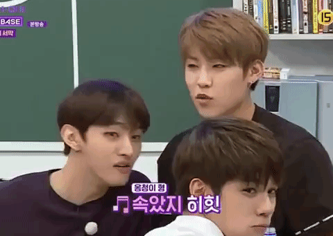 박우진이 먼저 철구처럼 눈뒤집고 따봉하는 포즈 하자마자 김재환이 보고 웃으면서