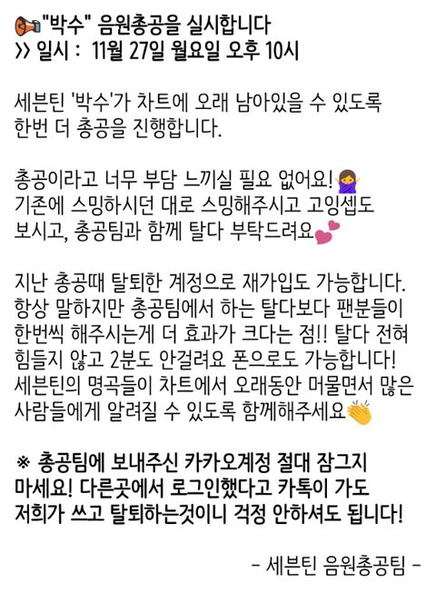 27일 오후 10시 총공이야 저번 총공 때 한번에 8위도 올라갔으니까 이번에도 열심히 해서 저번보다 더 올려보자ㅠㅠ