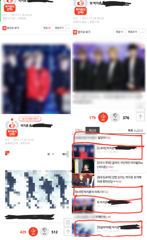 이거 다 어제 오늘 톡선 올라간 박지훈 까글들임