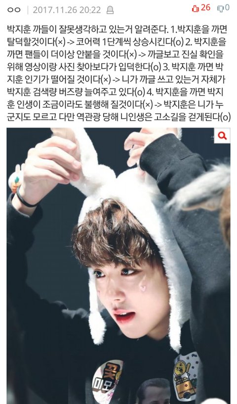 이글은 11월 26일 오전 0시 32분과 오전 9시 24분 경 톡선글에 두차례에 걸쳐 같은 도배성 내용으로 박지훈 까글이 접수됨에 따라 작성된 글이므로 관심 없으신 분들은 제발 미리 뒤로가기 눌러주세요❤
