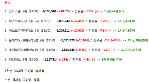 ⚠️13시 추이 및 점유율격차⚠️