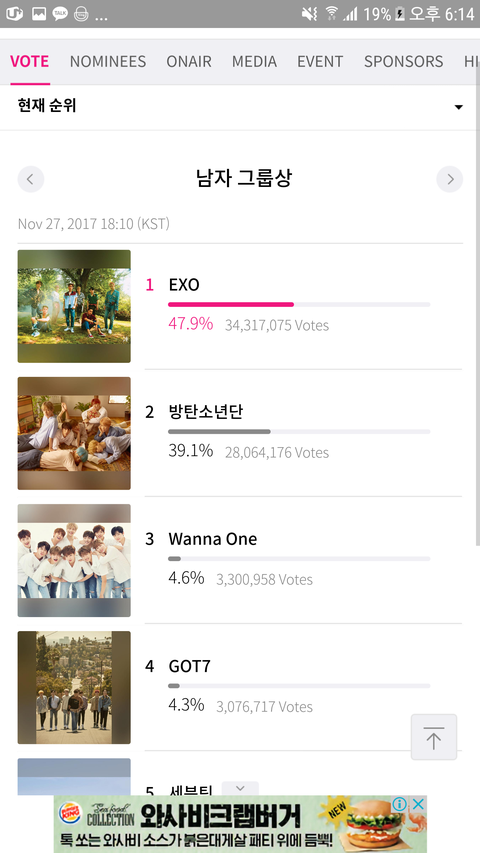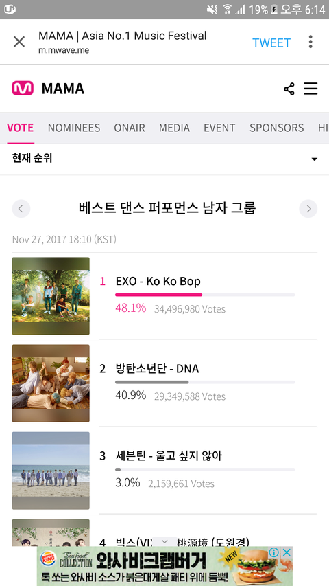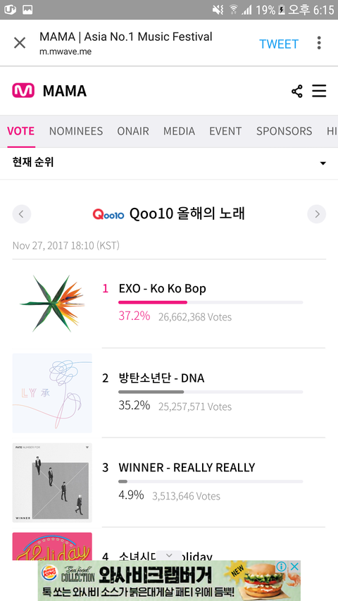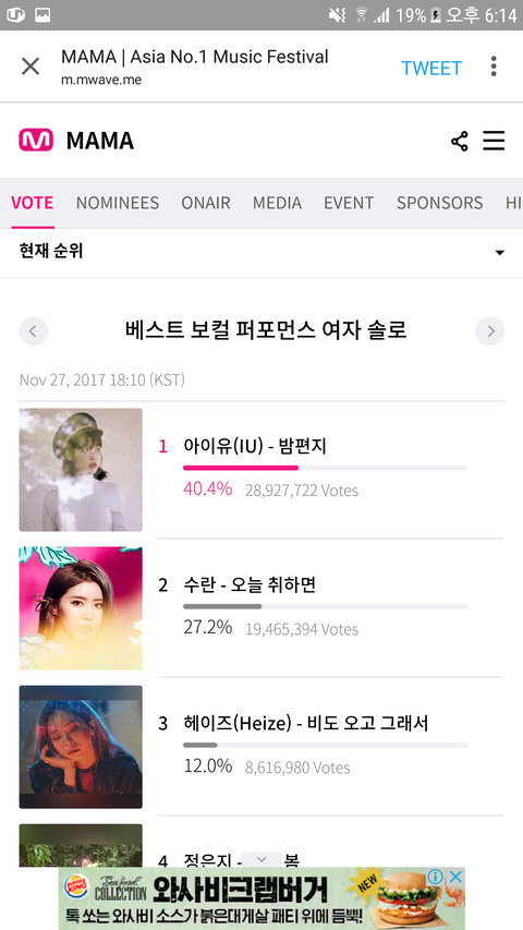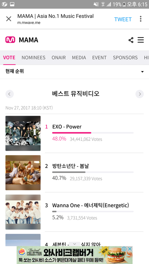 내일이 마ma투표종료야 순위 보고가 심각해