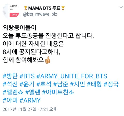 외랑이들 오늘 투표총공 한대