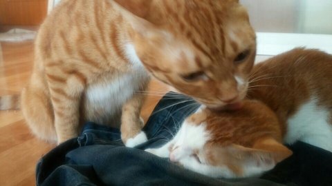 다정한 그루밍...처럼 보이지만 서로 시비걸기 시작
