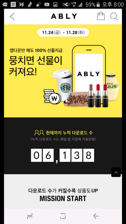 판녀들 다들 빨리 에이블리?? 였나 거기 이벤트 참여해 목요일까지 이벤트 참여자 15000명 넘으면 전원 맥 립스틱 준대 속닥에서 보고온거라 링크는 복사가 안된다ㅠㅜㅜ 에이블리 한번 들어가서 봐바 개이득이니까 꼭 참여해!!!