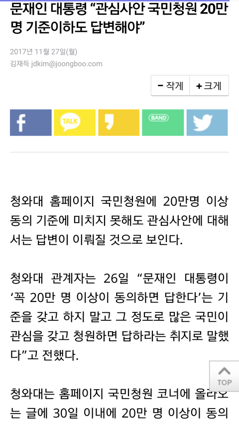 우선 청원 답변 기준은 한달 내 20만명 이상의 동의야.