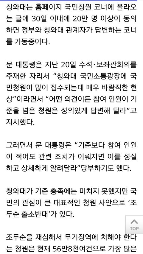 하지만 최근 문 대통령이 기준 충족을 하지 못 하더라도 많은 국민들의 관심사안이라면 답을 하라는 명을 내렸더라.