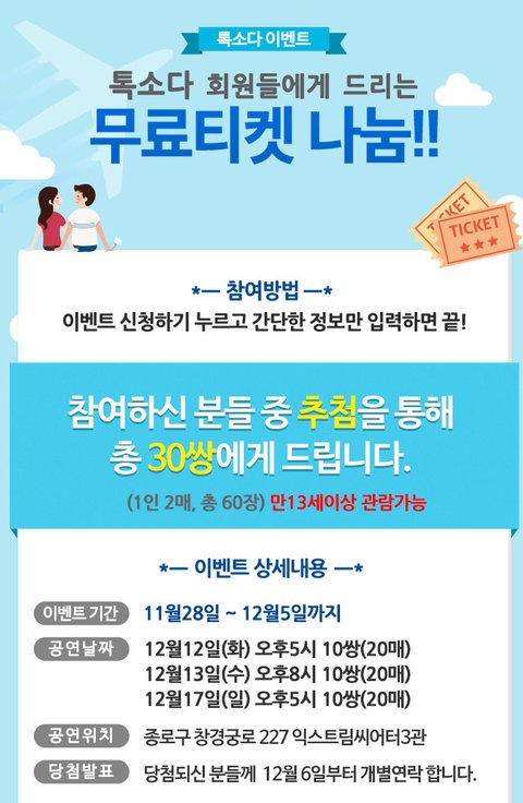 연극에 관한 상세 내용과 이벤트는 아래 이미지를 참고해주세요~