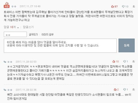 쟤네 팬들 저것 때문에 욕 많이 먹은 것 같아서 그냥 넘어갔더니 완전 사람 바보 등신으로 만드네