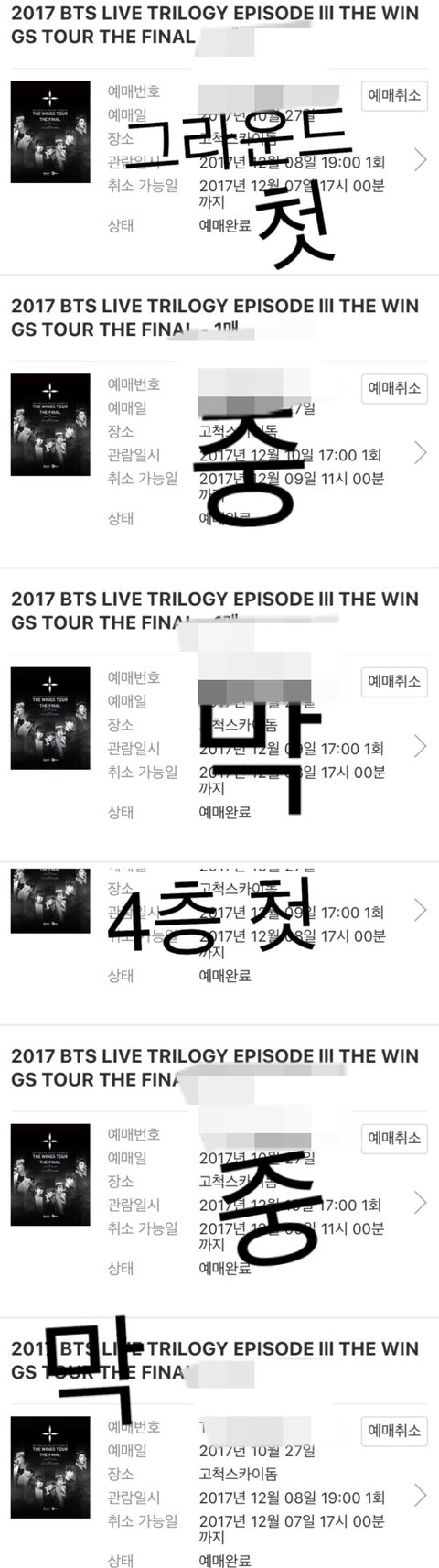 난 표6개 그라운드3 4층3 싹다있는거 ㅇㅈ할게