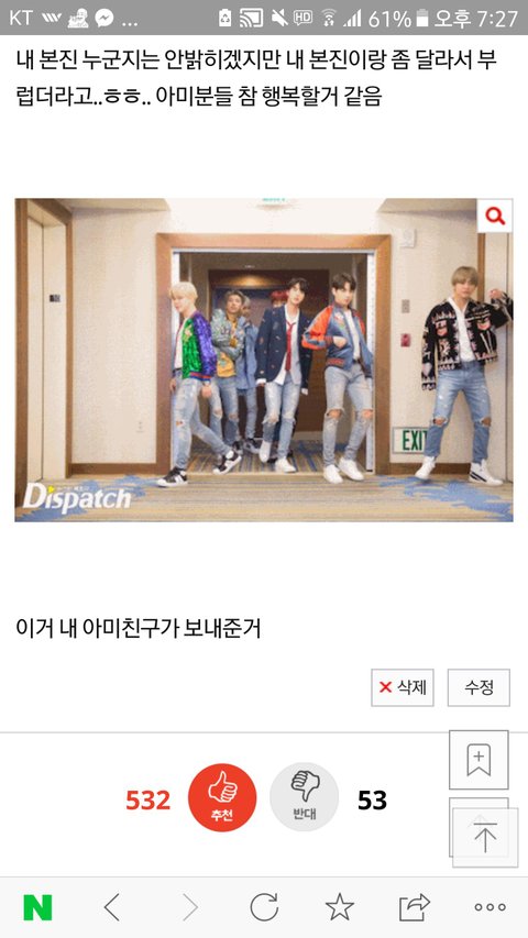 방탄 왜 열애설 안날까 올렸던 쓰니인데