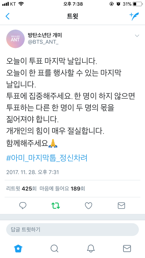 화나고 당황스럽더라도 투표 놓지말고 계속 해줘
