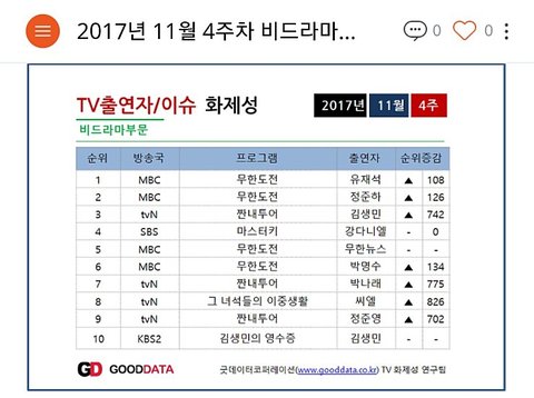 이번주 비드라마부문 화제성 순위