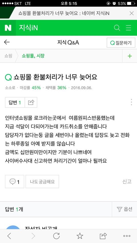 어이가 없어서 무슨 전화할때마다 다음주 다음주 거리냐고 그럼 나는 도대체 옷을 언제입냐, 그럴거면 환불을 해달라 했더니 내가 물건을 받아서 자기네쪽으로 배송을 시켜야 환불을 해줄수 있단다.