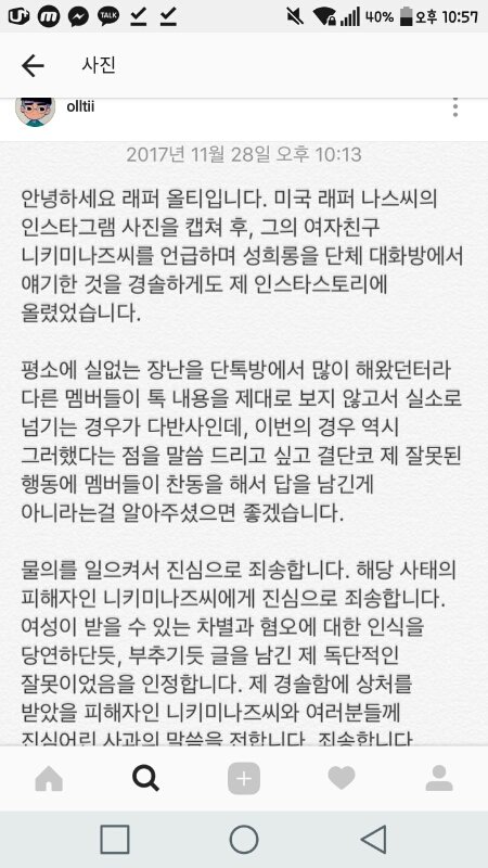 이 댓글중에서 올티는 딱 두댓글만 봤나봄 그게바로 래퍼 니키미나즈랑 실없는장난..