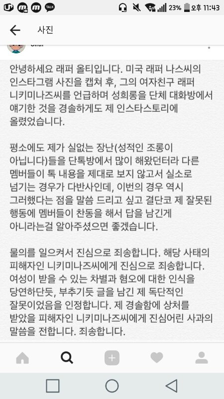 니키미나즈한테 사과할거면 영어로 써라, 손글씨로써라, "그의여자친구" 빼라, 니키미나즈앞에서는 래퍼 안붙히냐, 딴멤버들은 왜 가만히있냐, 저게사과문이냐 응앵문이냐, 나스한테는 사과안하냐, 실없는장난이면 ~^-*^~해도되냐?