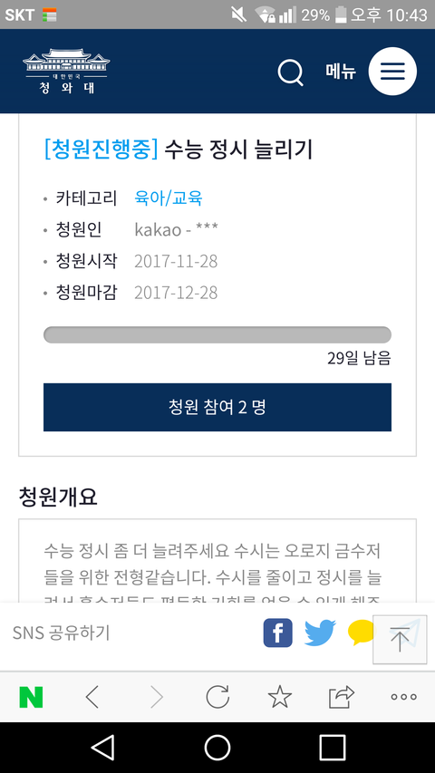 수능 정시 늘리기 청원 동의 부탁드립니다