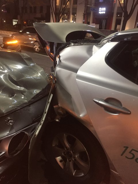 구급대원과 경찰 분들이 도착한 후에, 아무도 저희와 택시기사 아저씨를 신경쓰지 않았던 것도 사실이고 가해자만 유독 챙기셔서, ‘육안으로 보기에는 멀쩡한데, 정말 많이 다쳤거나 아니면 음주운전 사고인가? 젊은 여자가 좋은 차를 타고 있어서 그런가’라는 별별 생각이 다 들었습니다. 택시기사 아저씨께서만 오히려 본인이 가슴에서 피가 나고 있는 상황에서도 저희를 챙기셨구요.. 다만 택시기사 아저씨 가슴에서 피나시고 계신데 현장에 계신 그 누구도 택시기사분 케어 안하시고 계시다는 점도 나중에 저희를 분노하게 했습니다.(택시기사분이 사고 현장 뒷수습을 위해 바쁘게 움직이시긴 했습니다) 물론 보험처리를 위해 택시기사분이 본인은 아프지만 괜찮다고 하셨다는 렉카분? 소방서 사이드의 기사는 읽었습니다. 하지만 사고 현장을 보면 아시겠지만 택시는 앞뒤로 모두 나가 반파가 되었던 상황입니다. 저희가 안죽은게 천운이었다고 할 정도로요. 택시기사분이 사고 뒷처리하고 계셨지만 저희만큼 크게 놀라셨을 겁니다. 실제로 저희 전화번호를 입력하실 때 손을 심하게 떠시면서 제대로 입력을 못하셨습니다. 그랬던 상황인데 정말 그 누구 하나도 ‘괜찮으시냐? 병원에 가셔야 한다’는 이야기는 안하시더라구요. 적어도 저희가 보는 앞에서는요. 또, 제가 이렇게 큰 사고는 처음이라 잘 모를 수도 있지만, 본인이 아무리 괜찮다고 하셨다고 해도(이 부분은 제 눈으로 확인된 바가 아닙니다) 가슴에서 피가 나고 차가 반파가 되었고 또 기사님 에어백도 터진 상황에서 아픈 분을 아무도 케어하지 않는다는게 솔직히 이해가 가지 않았습니다. 오히려 가해자 차량 주위에 다수의 사람들이 가해자분을 케어하고 무언가를 계속 물어보고 있었구요..