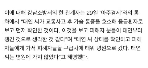 오직 그뿐이다. 더도 덜도 말고 그 외의 루머생성 및 유포는 태연과 구급대원 및 경찰들을 향한 2차가해이고.