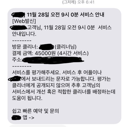 하여튼 9시 10분쯤 해서 어머니한테 가사도우미 왔다는 연락 받고 안심하고 있었습니다. 성질 부리시는 분이더라도 워낙 어플의 후기가 좋아서 청소 잘 해주시겠지 라고 당연히 생각했지요.