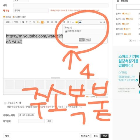 4) 그리구 링크를 붙이구 확인 누르면 끝