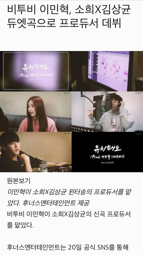 밑글x 이민혁 프로듀싱기사 메인뜸