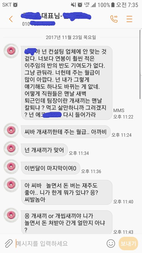 사장한테서 온 문자였는데 지금도 너무 분하고 화가납니다