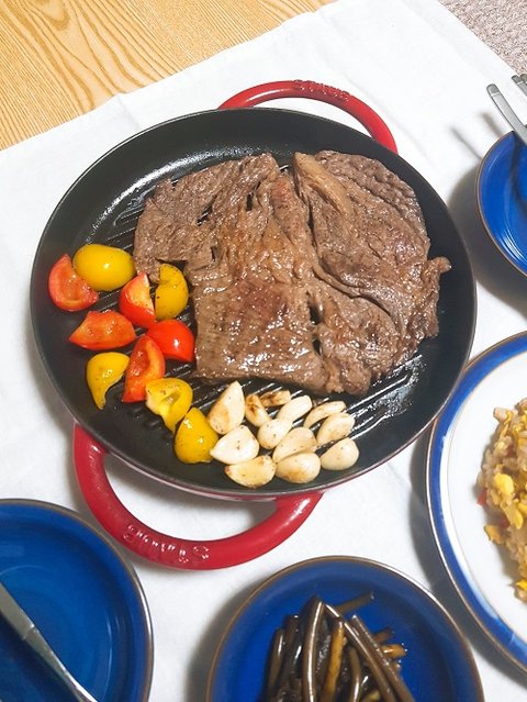본가 내려갔다가 아빠가 한우를 사주셔서 하나는 구워먹고 가지고 집에와서